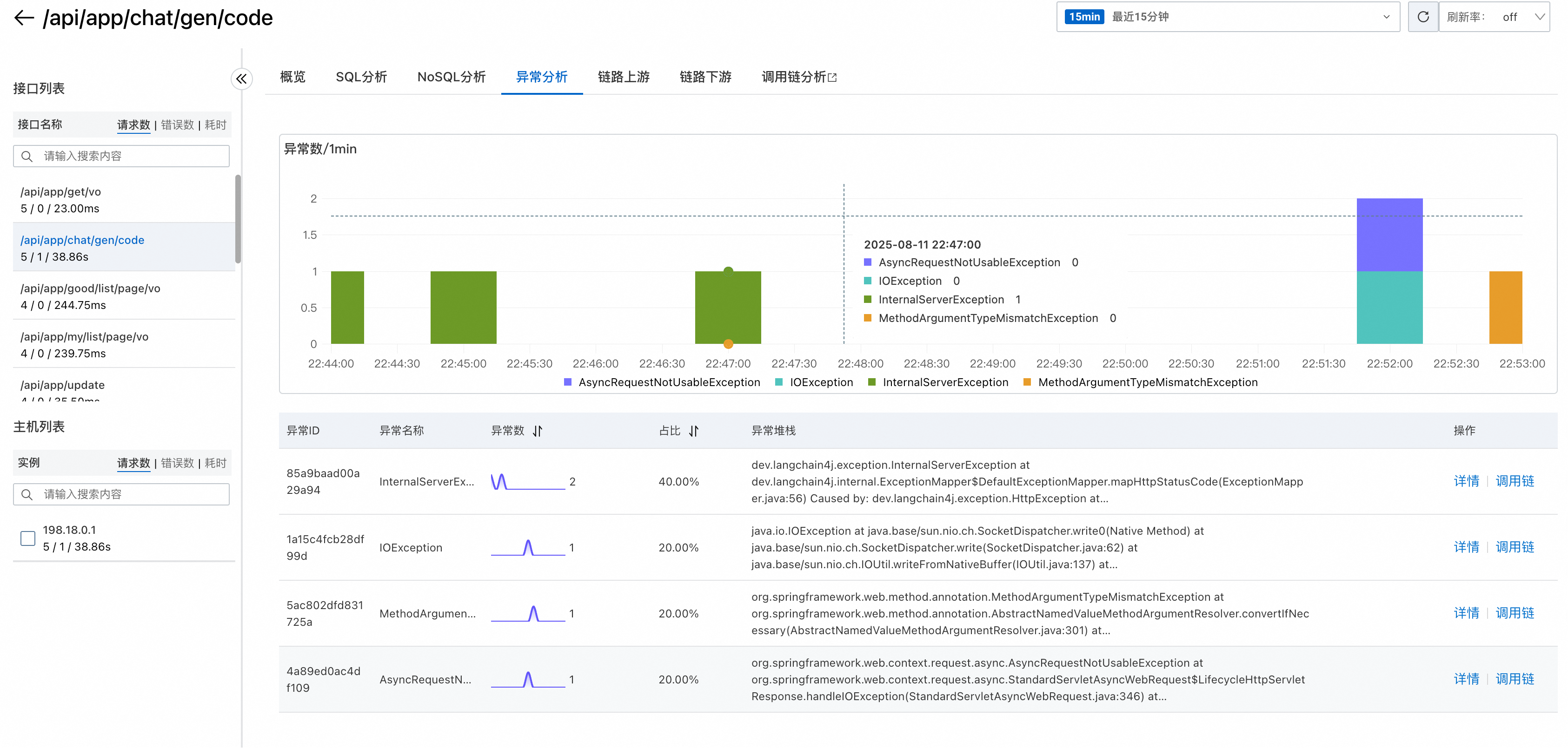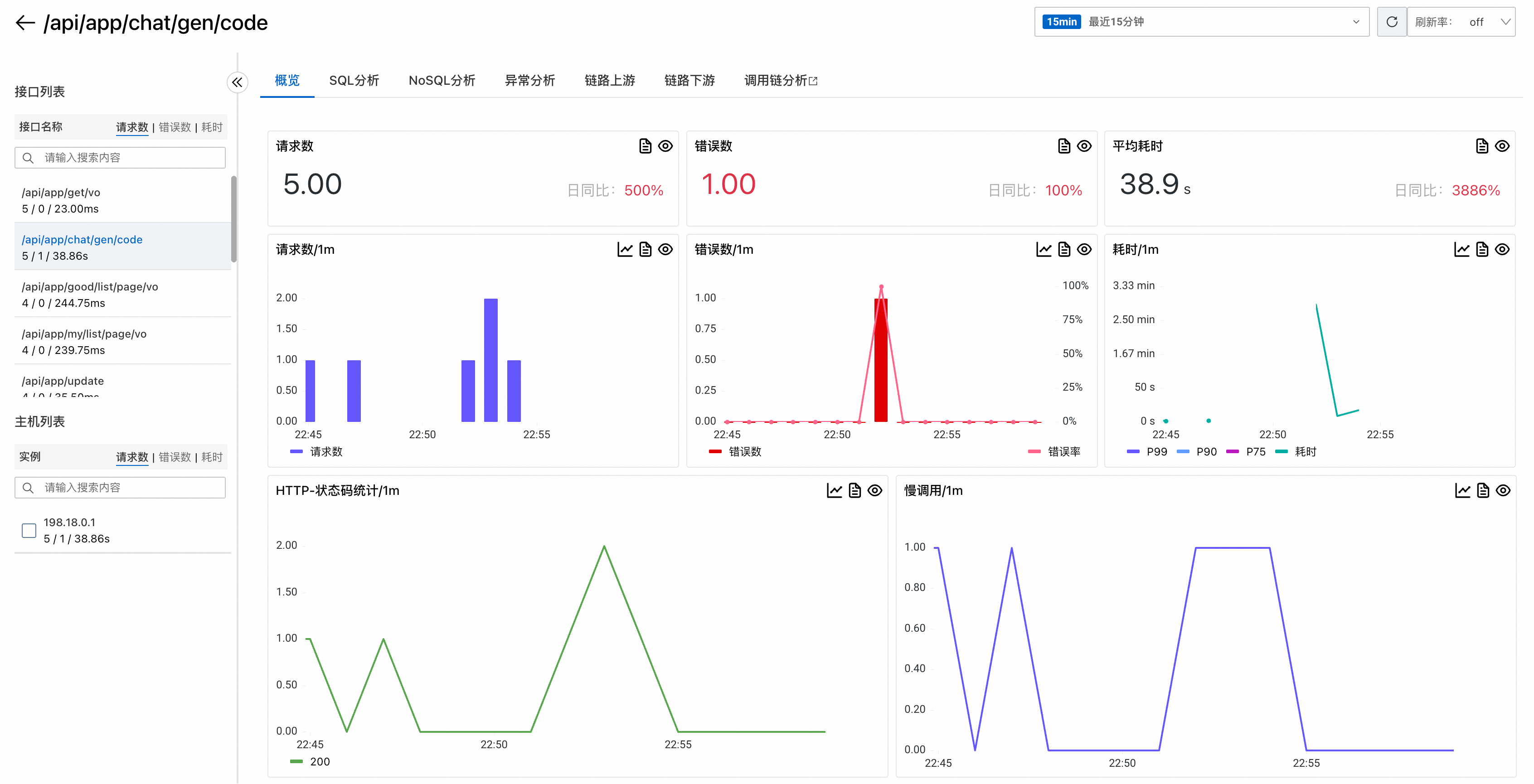 点击具体接口还可以深入分析该接口的详细数据(这就是所谓的 “下钻分析”):
