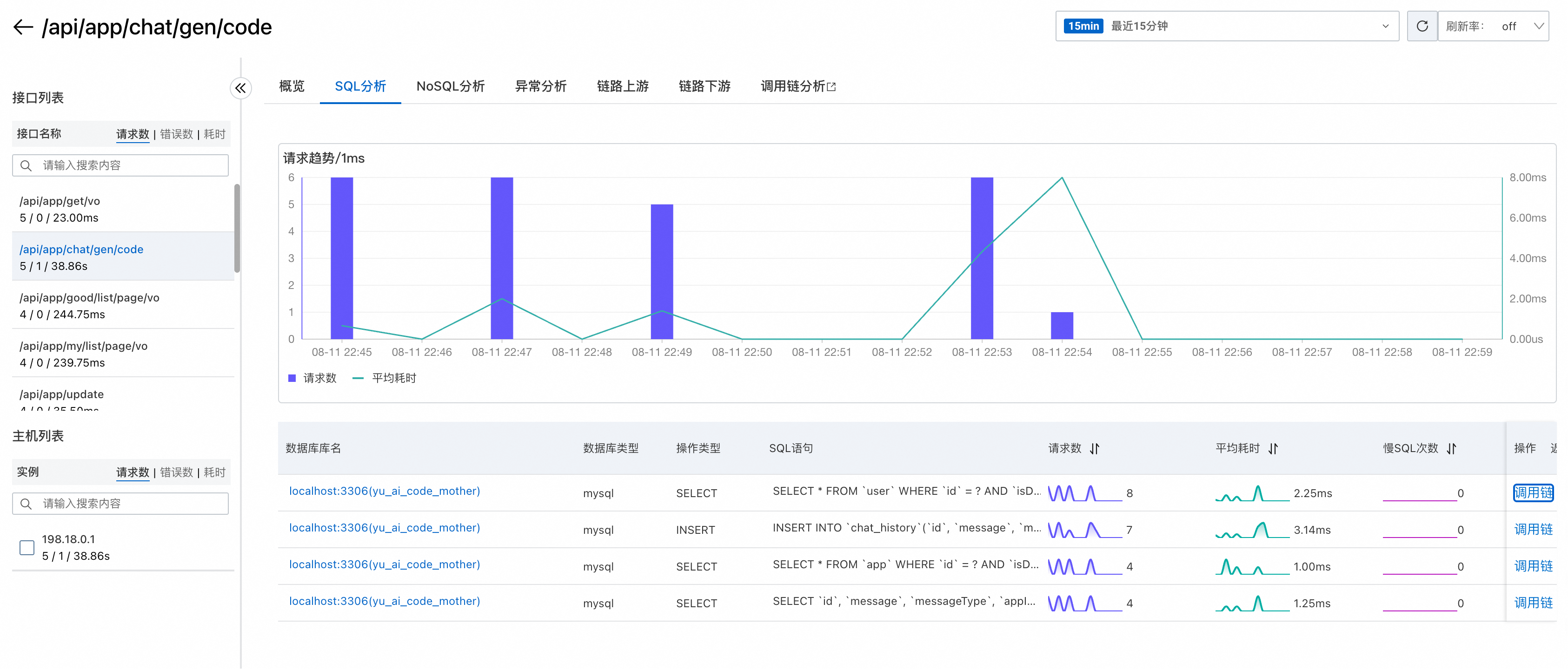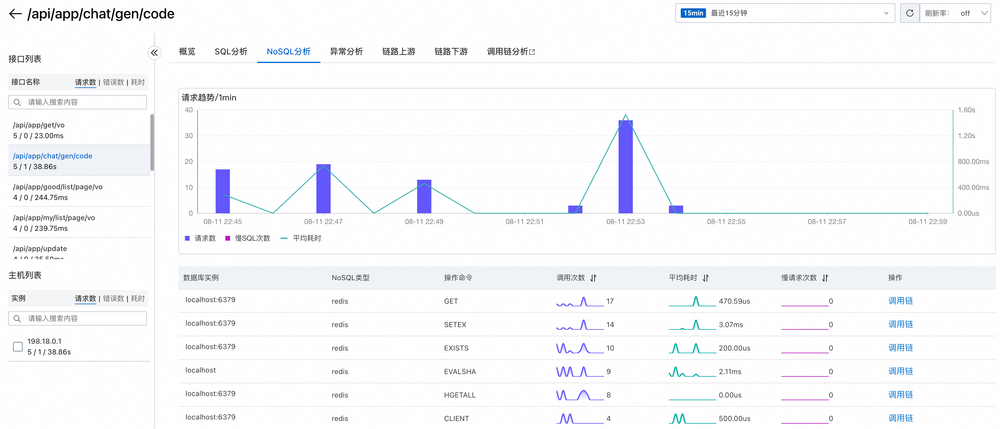 以及 NoSQL(如 Redis)的调用分析: