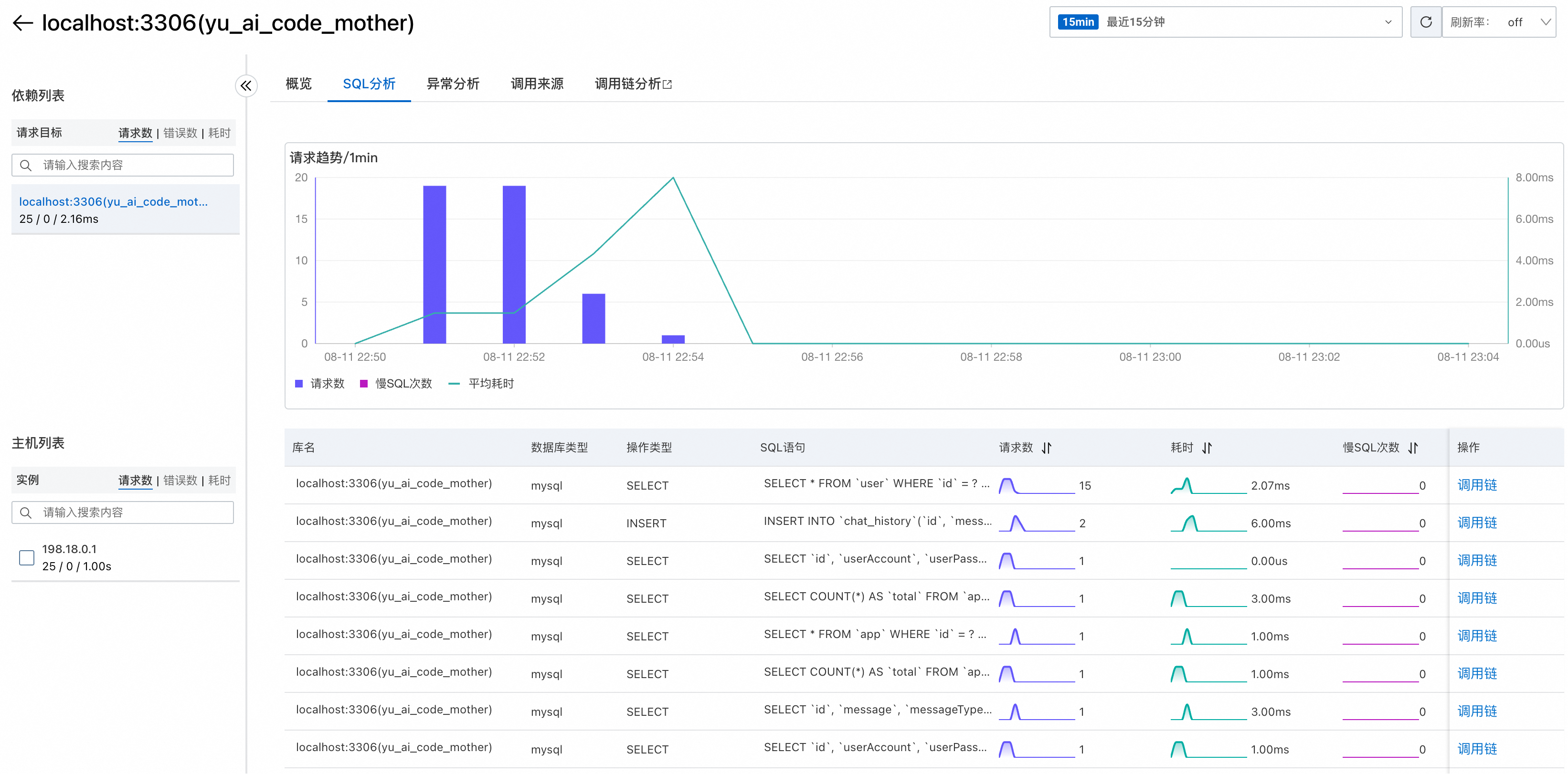 ARMS 还提供了 SQL 调用分析功能,能够监控数据库操作的性能: