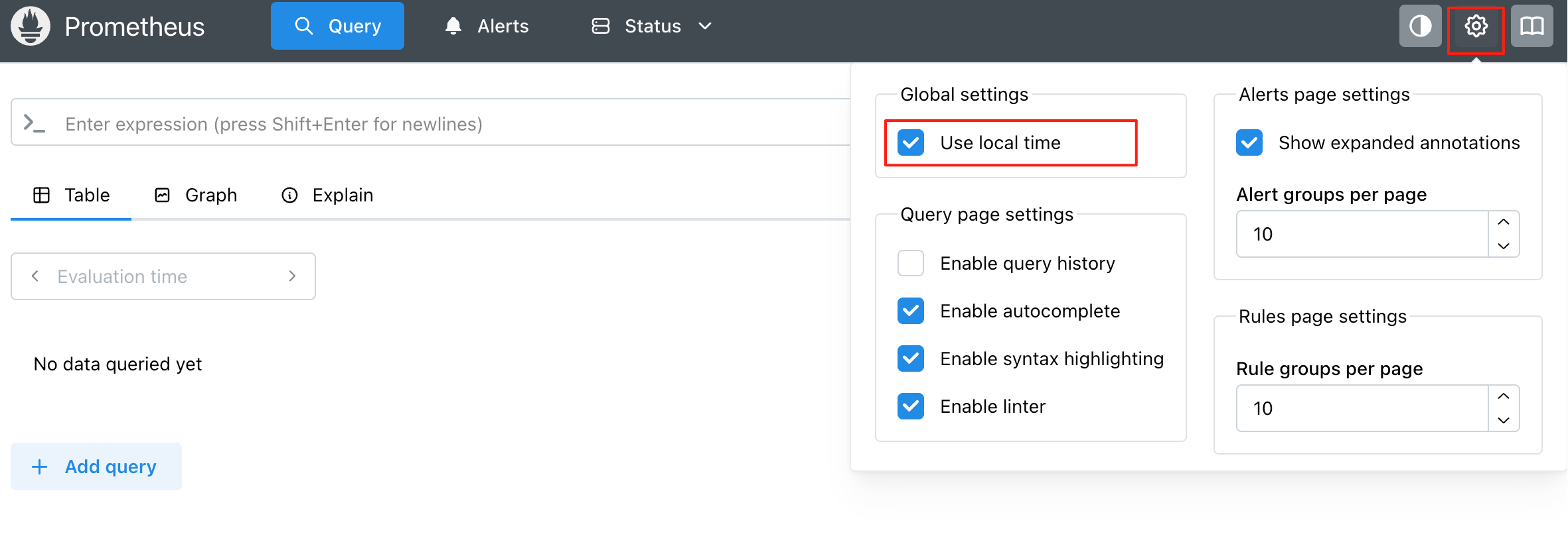 6)在 Prometheus 查询界面可以输入