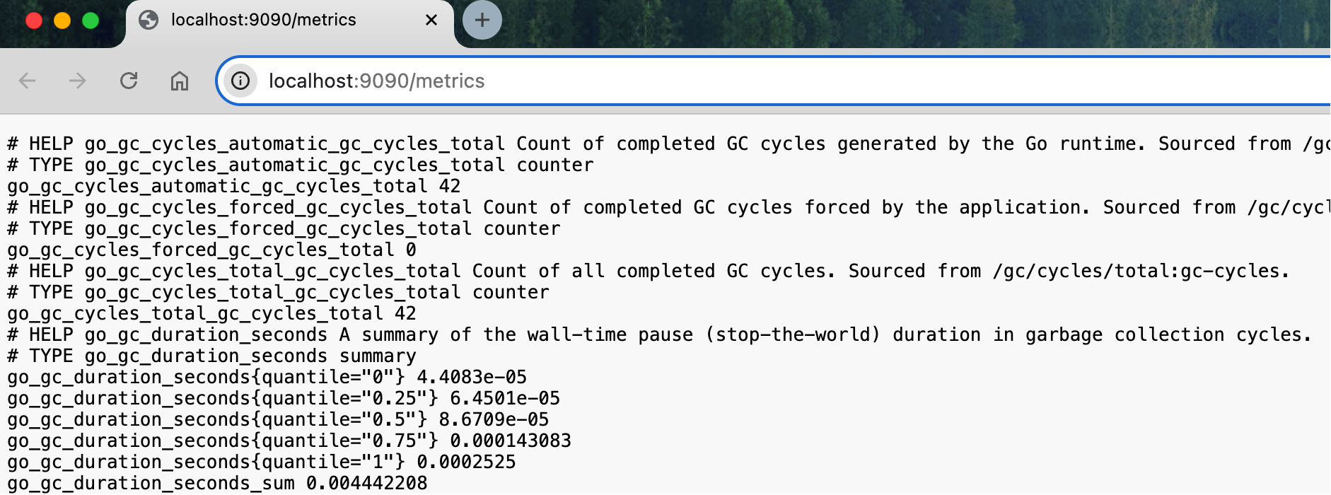 访问 http://localhost:9090/metrics 可以看到 Prometheus 自身暴露的指标数据: