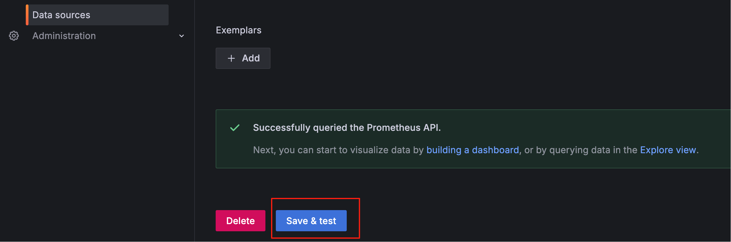 配置 Prometheus 服务器地址,然后测试连接: