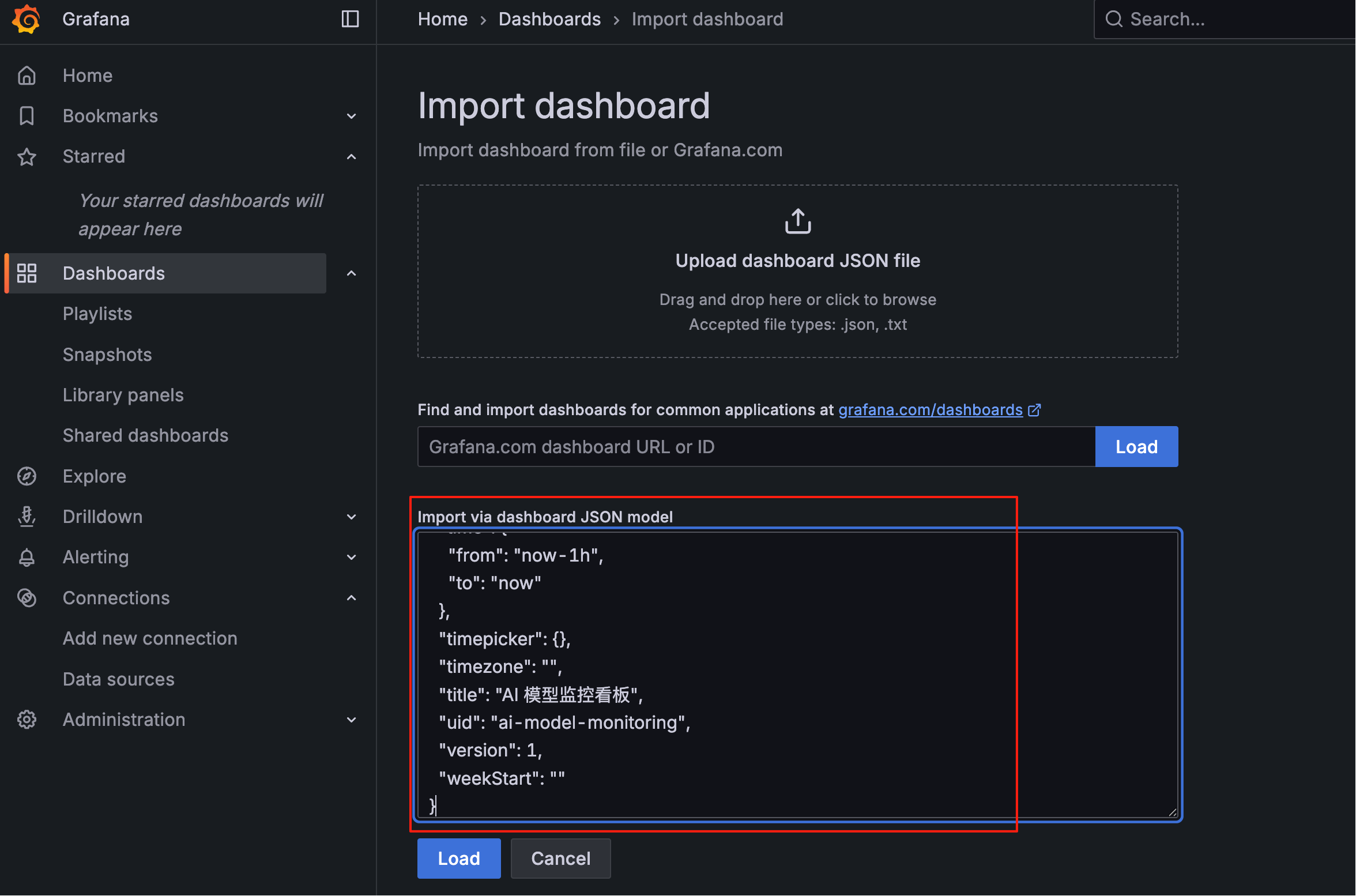 2)快速导入现成的仪表板模板: