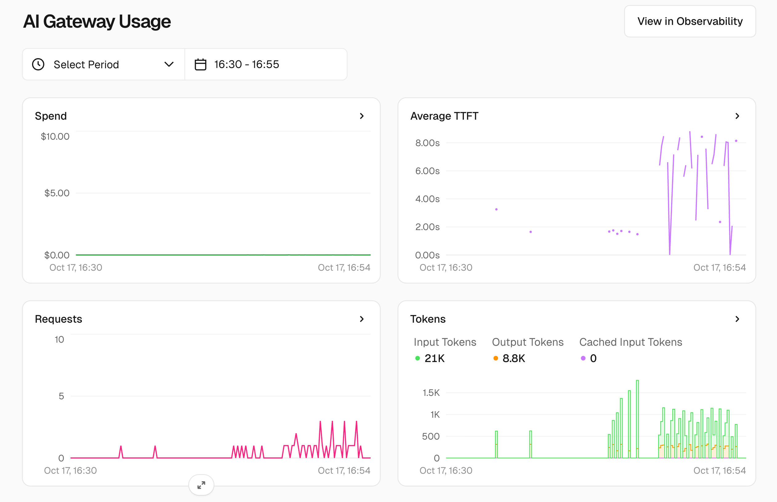 此外,还提供了 可观测性 等企业级功能,帮你了解 AI 的调用情况和成本分析:
