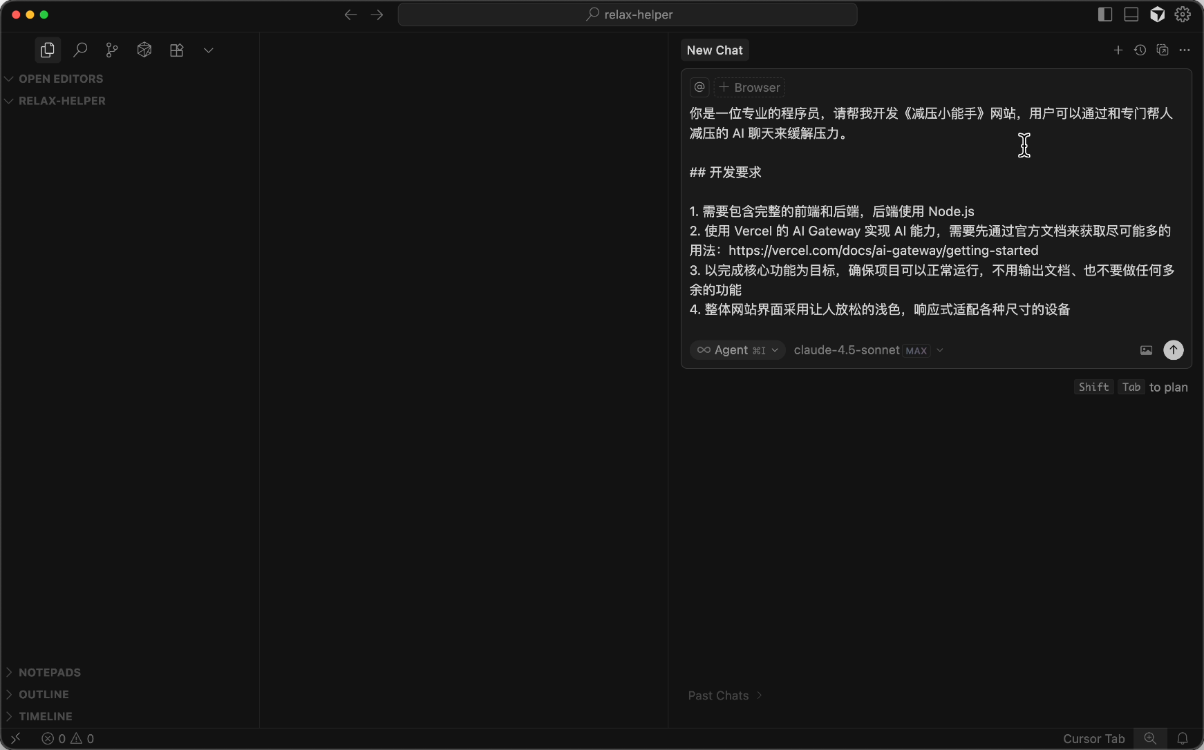 由于 Vercel AI Gateway 是比较新的玩意,AI 可能不理解它的用法,所以我直接把 Vercel AI Gateway 的官方文档扔给 Cursor,让他通过文档来学习用法。
