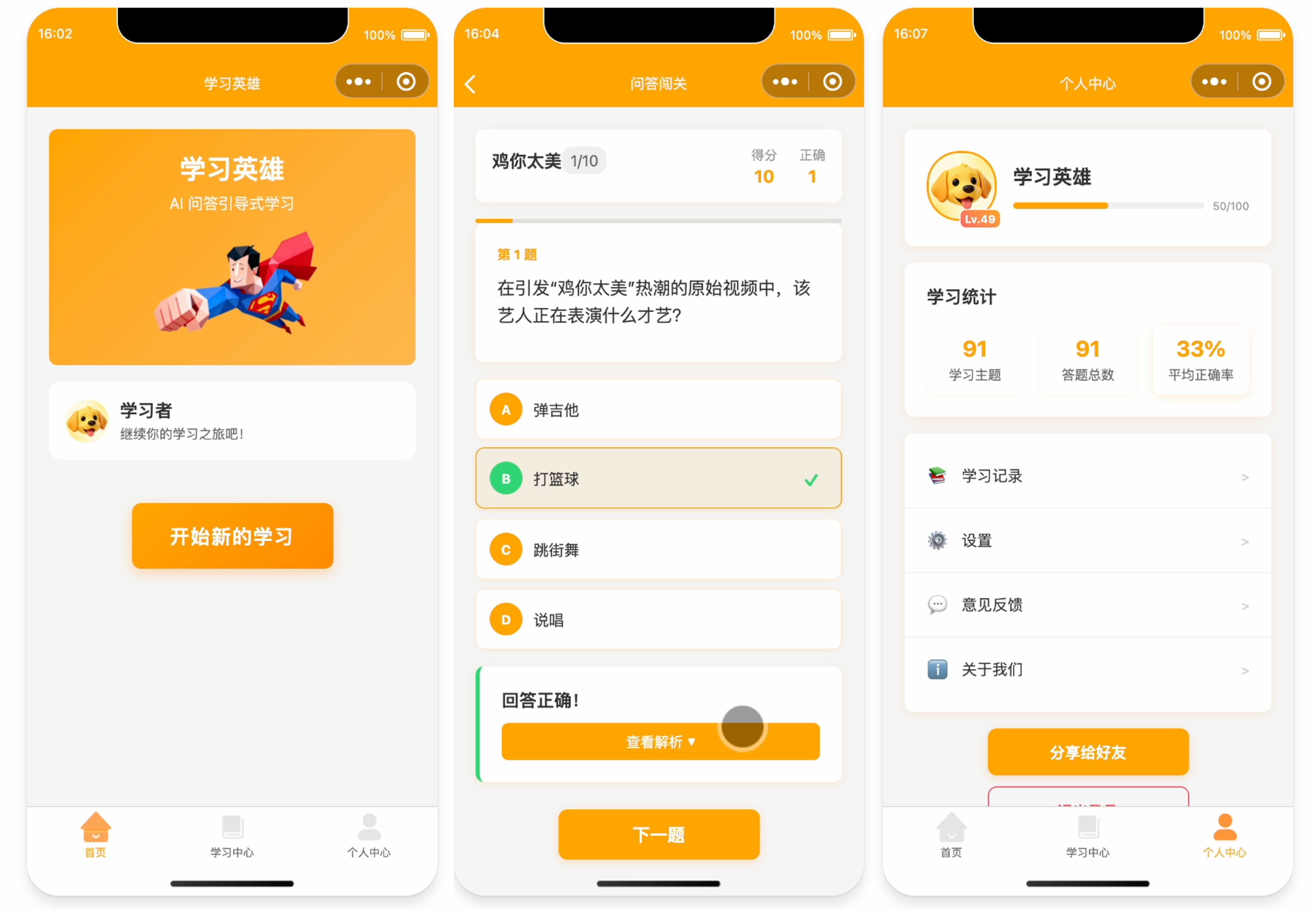 前段时间我用 AI 搞了个《学习英雄》小程序,让学习像玩游戏一样轻松有趣。