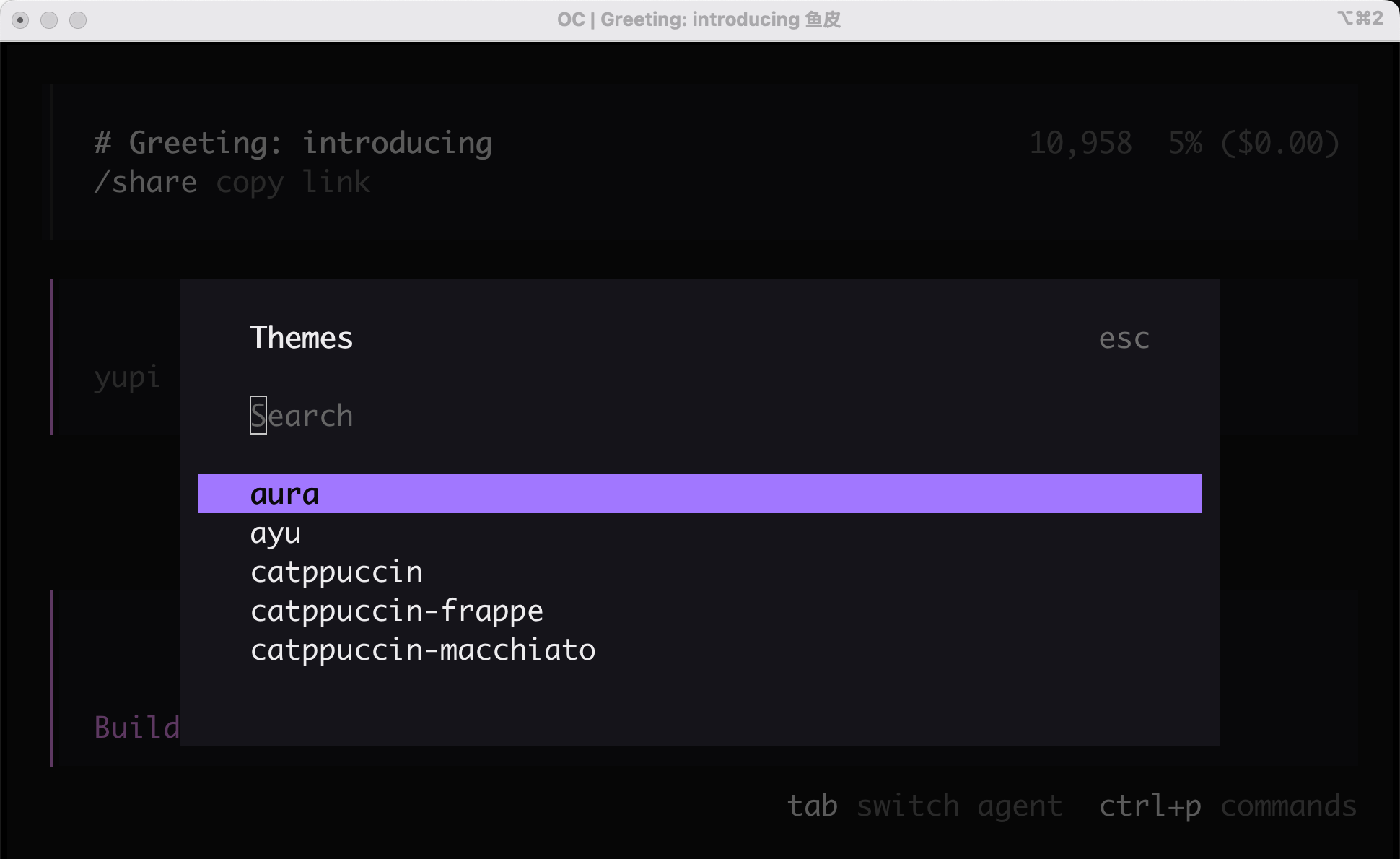 支持几十个不同的主题,颜值都挺高的,从这点也能看出来 OpenCode 很注重用户的体验: