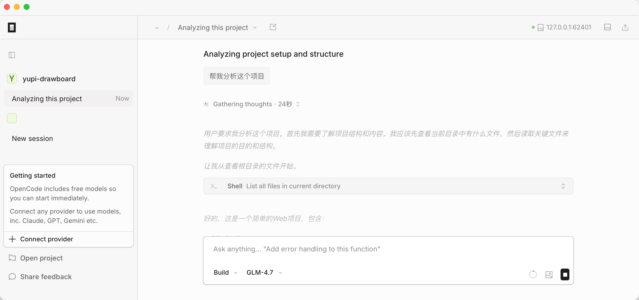 这让我不得不怀疑 OpenCode 的能力了。而且感觉 GLM 大模型在 OpenCode 中好像变笨了,不知道是不是我的错觉……