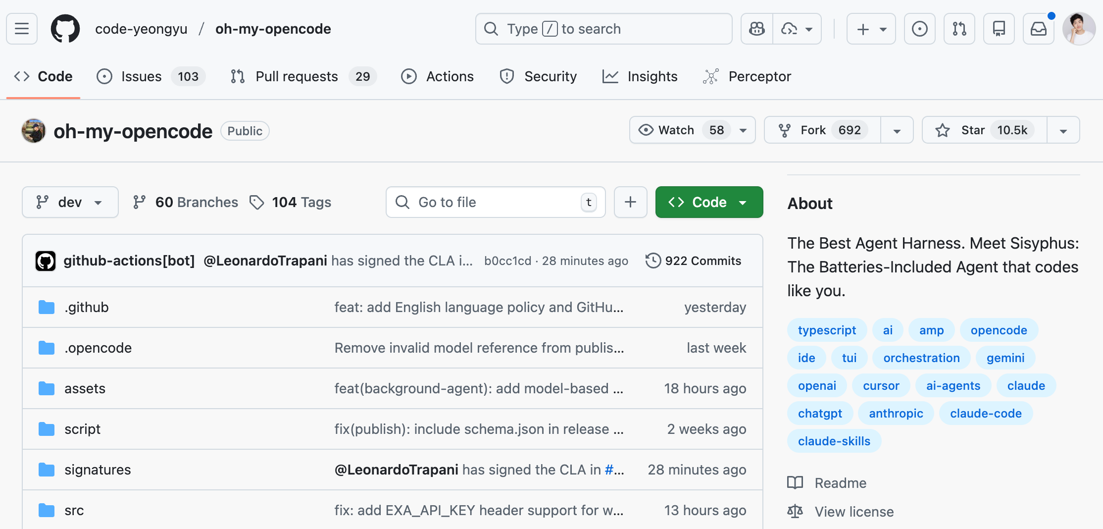 如果你觉得 OpenCode 还不够强,可以试试 Oh My OpenCode 这个开源的 OpenCode 增强插件,已经 1w Star 了。