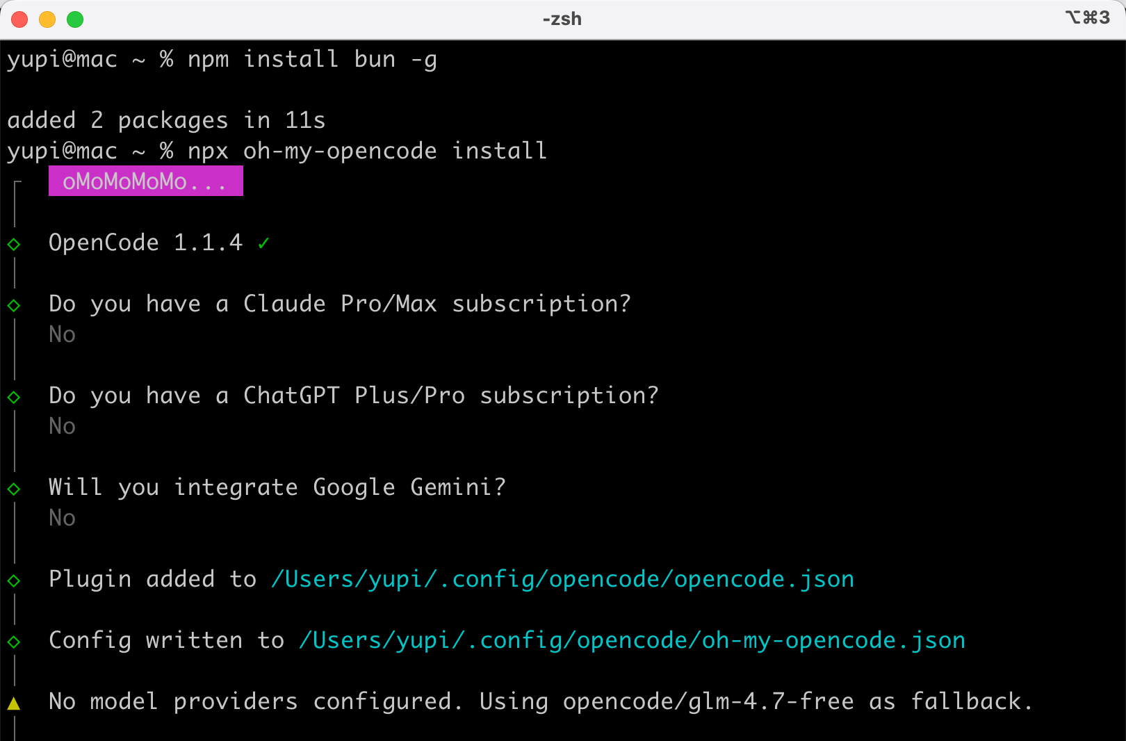 虽然官方说用一行命令就能完成安装,但我建议你先安装 bun,再执行 npx 来安装,否则可能会报错。