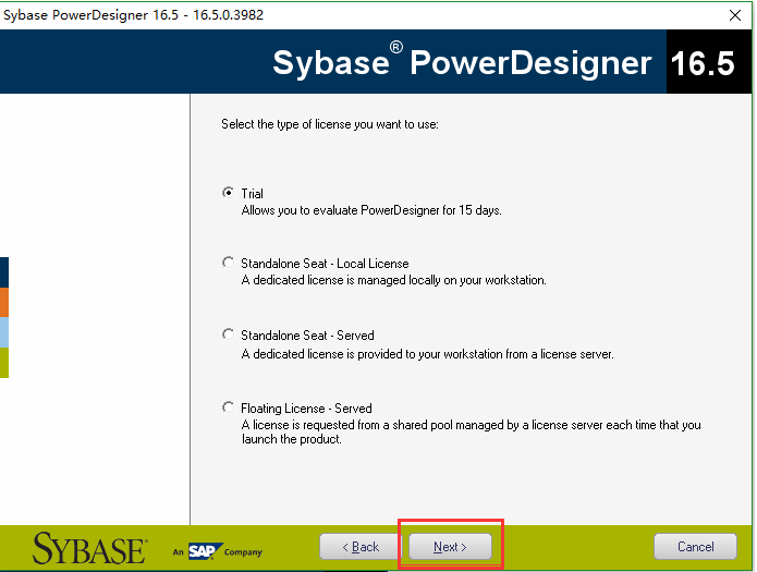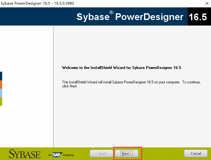 解压下载后的安装包,双击PowerDesigner.exe来到安装页面,点击 Next