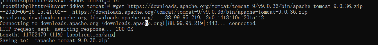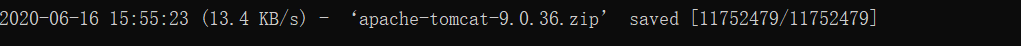 1、命令: wget https://downloads.apache.org/tomcat/tomcat-9/v9.0.36/bin/apache-tomcat-9.0.36.zip