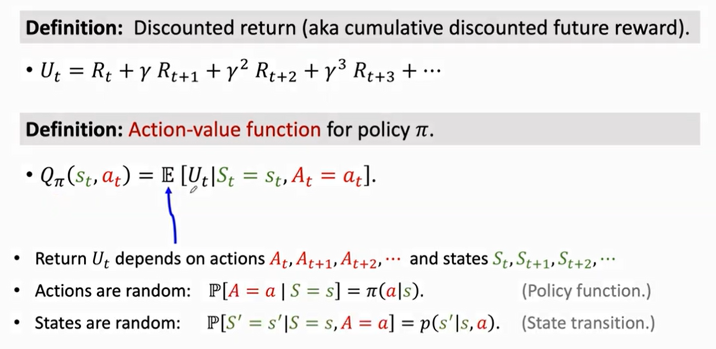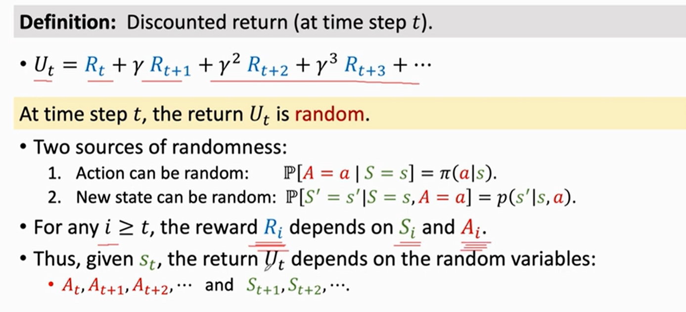 Ut是未来获得的奖励总和,Ut是随机变量 它依赖于所有未来的随机动作