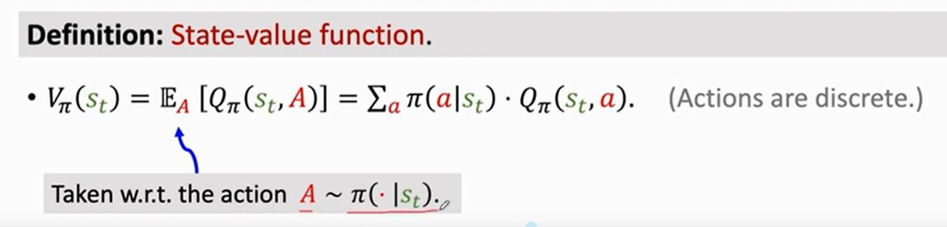 状态价值函数(State-value function):VΠ,跟策略函数(policy function)Π、状态s、动作a无关