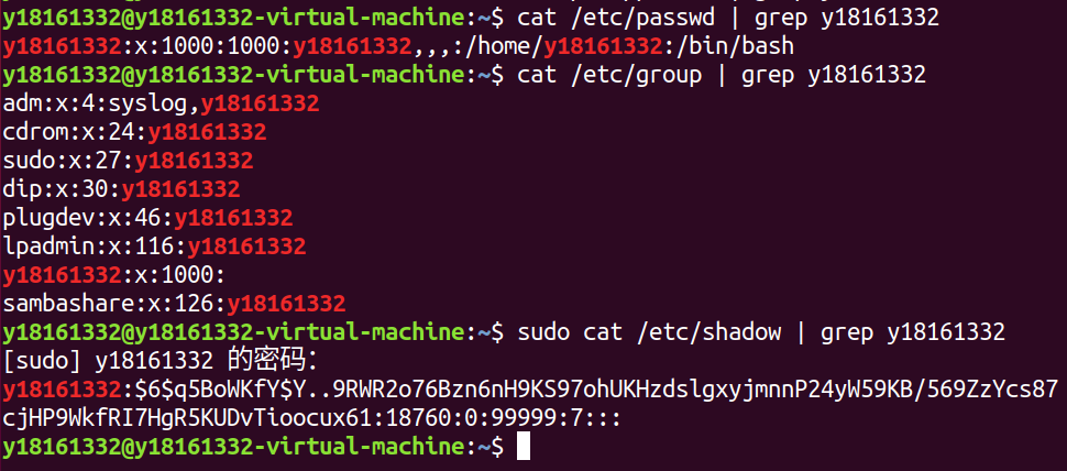 1)如何在与用户有关的三个文件中查看当前用户的信息?
