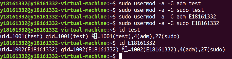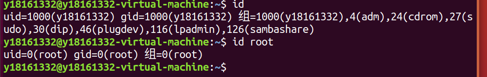 id后输出为当前用户下的身份特征,id root后输出root用户下的身份特征