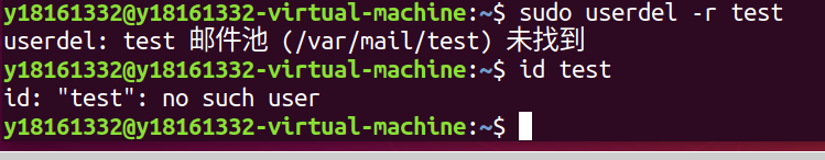 e)删除账号test