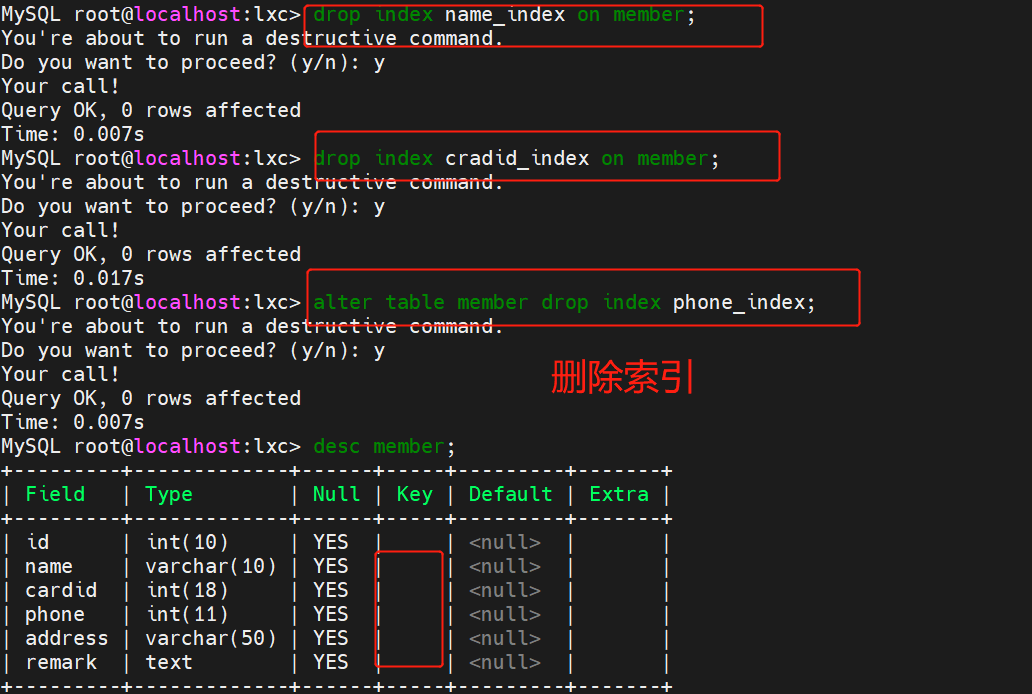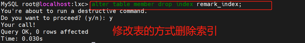 alter table member DROP index phone_index; #以修改表的方式删除索引