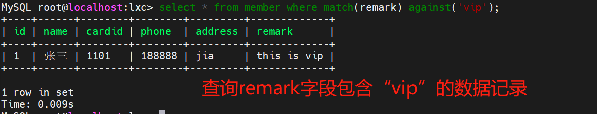 #查询remark字段包含字符串"vvvip"的数据记录。