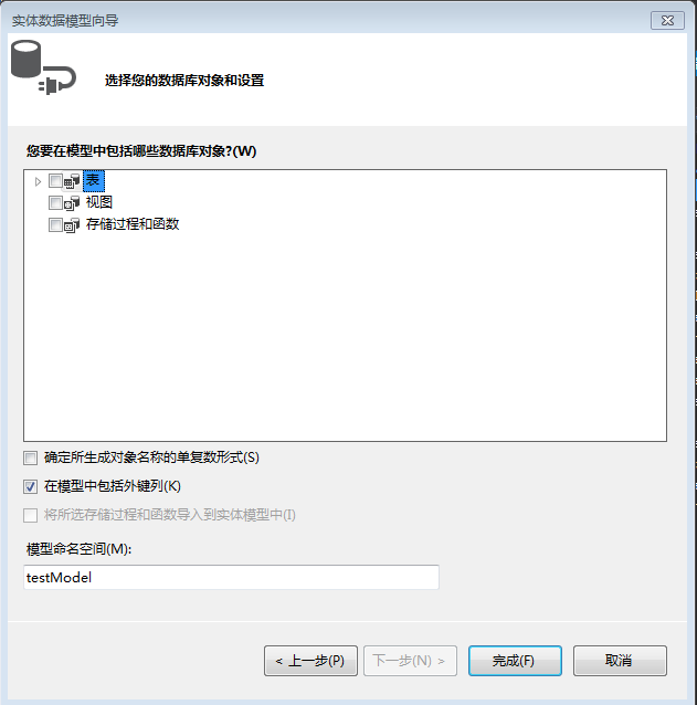 项目/右键/添加/新建项/ADO.NET 实体数据模型,正常就会出现如下窗口,选择您的数据库对象和设置;