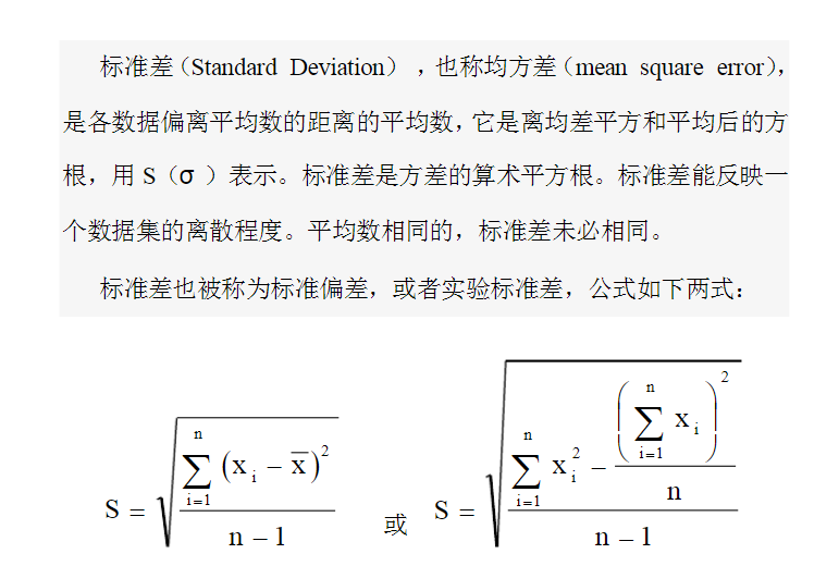 有的时候为了考虑执行效率等,我们把数据处理会放在前端js中,而不选择在SQL中执行。首先什么是标准差?干嘛的?