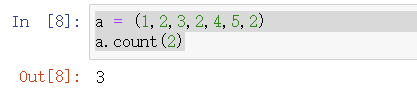 由于元组的内容和长度都是无法改变的,他的实例方法很少。一个常用的有用的方法是count(列表中也可用),用于计量某个数值在元组中出现的次数。