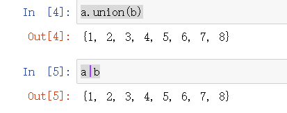 两个集合的联合就是两个集合中不同元素的并集。可以通过union方法或 | 二元操作符完成: