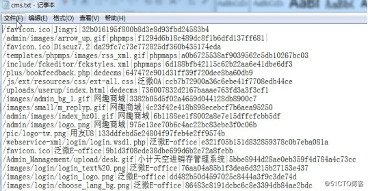 计算网站所使用的中间件或cms目录下的静态文件的md5值。md5可以唯一的代表该文件的信息。静态文件包括html、css、image等