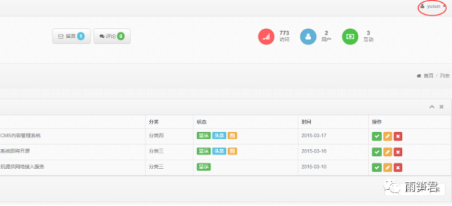 现在右上角这里有用户名显示,因为我们现在是正常登录进入后台的。