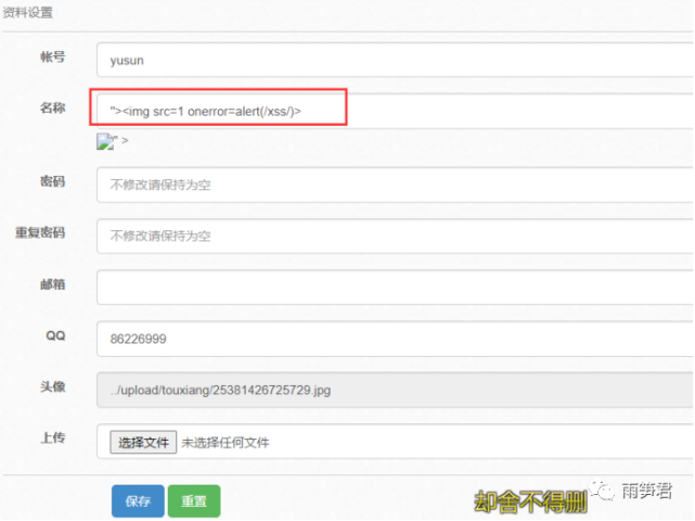 我们发现后台资料修改界面,没有任何过滤。