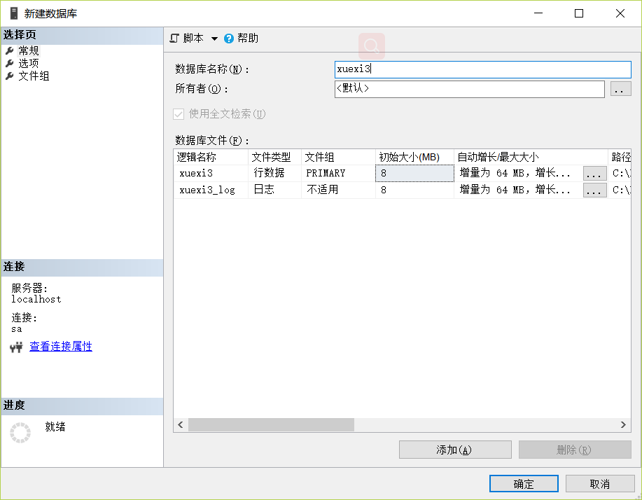 3.右键点击数据库,点击新建数据,名称输入字母或英文;然后点确定