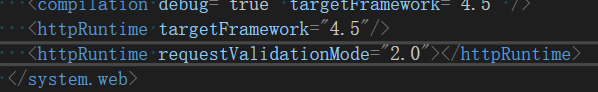 然后在Web。config中添加 <httpRuntime requestValidationMode="2.0" />