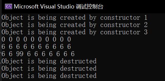 #pragma once #include<iostream> using namespace std; class Vector_int { public: Vector_int(int n) ; Vector_int(int n,int start); Vector_int(Vector_int& obj); ~Vector_int(); int& at(int i); void print(); private: int size; int* p; }; Vector_int::Vector_int(int n) { p = new int[n] {0}; size = n; cout << "Object is being created by constructor 1" << endl; }; Vector_int::Vector_int(int n, int start) { p = new int[n]; size = n; for (int i = 0; i < n; i++) p[i] = start; cout << "Object is being created by constructor 2" << endl; }; Vector_int::Vector_int(Vector_int& x) { p = new int[x.size]; size = x.size; for (int i = 0; i < size; i++) p[i] = x.p[i]; cout << "Object is being created by constructor 3" << endl; }; Vector_int::~Vector_int() { delete[] p; cout << "Object is being destructed" << endl; } int& Vector_int::at(int i) { return p[i]; }; void Vector_int::print() { for (int i = 0; i < size; i++) cout << p[i] <<" "; cout << endl; };