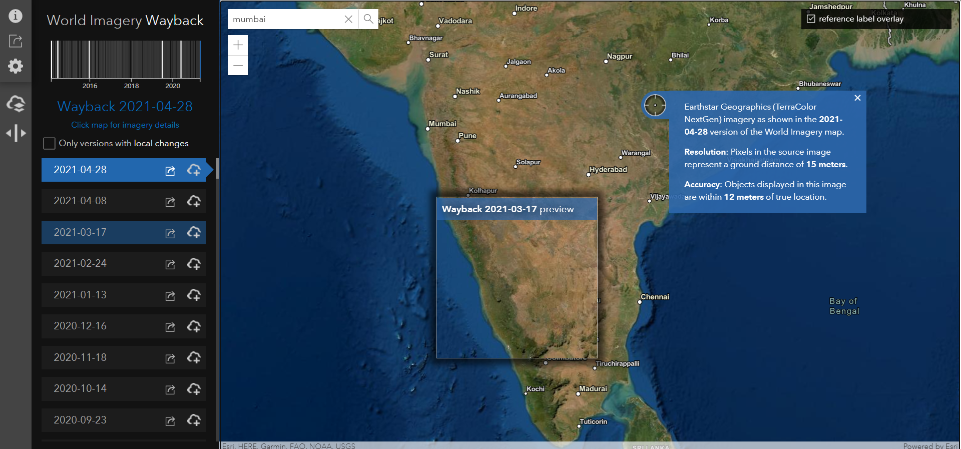 Esri ArcGIS https://livingatlas.arcgis.com/wayback/