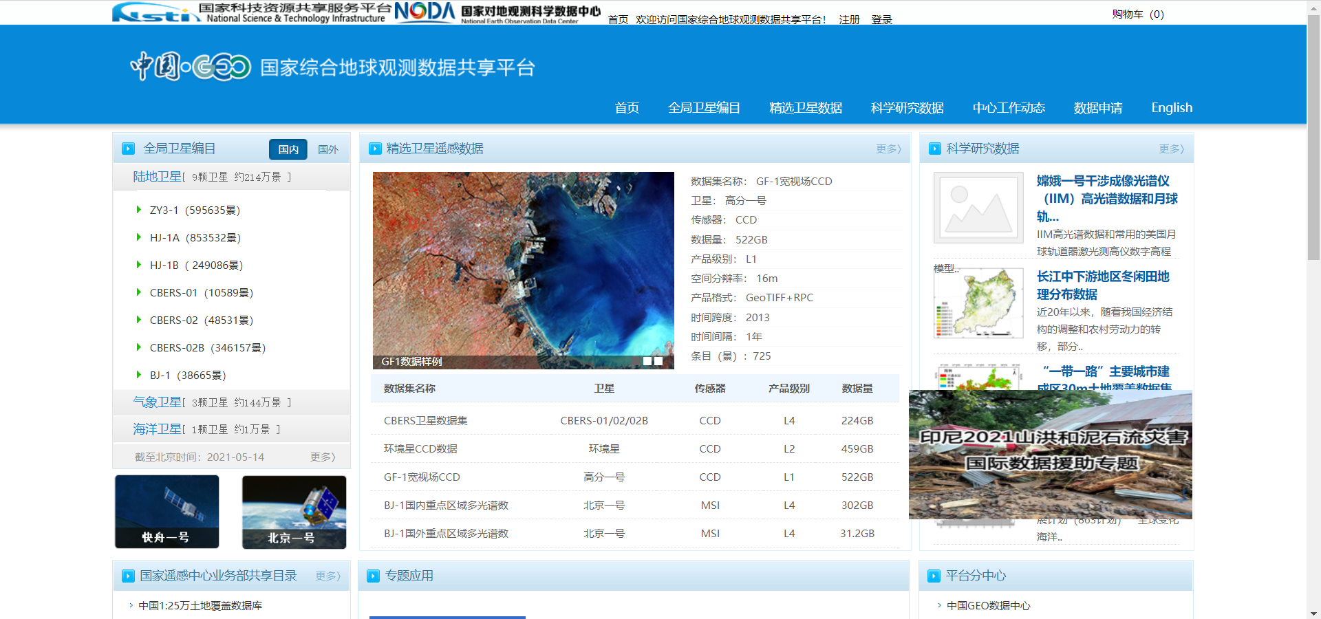 是由科技部主导,国家遥感中心牵头,各卫星中心、数据单位贡献数据、参与建设。数据主要为遥感卫星数据,涵盖主要的国内卫星和国际卫星,也包括相关科学研究数据。