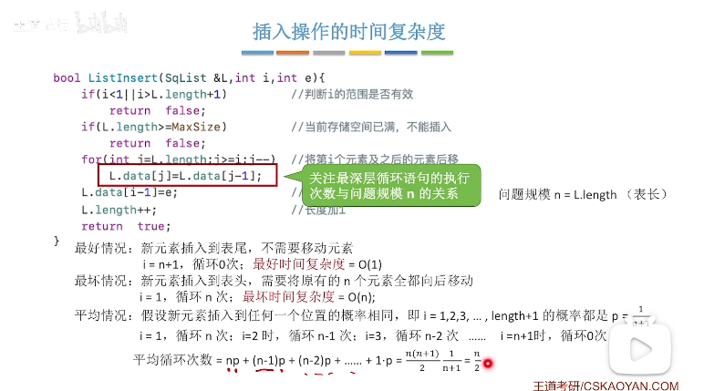 //顺序表插入 void ListInsert(SqList &L,int i,int e){ if(i<1||i>L.length+1) return false; if(L.length>=MaxSize) return false; for(int j=L.length;j>=i;j--){ L.data[j]=L.data[j-1];// L.data[i-1]=e;//在第i个位置放e L.length++; } }