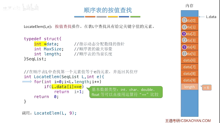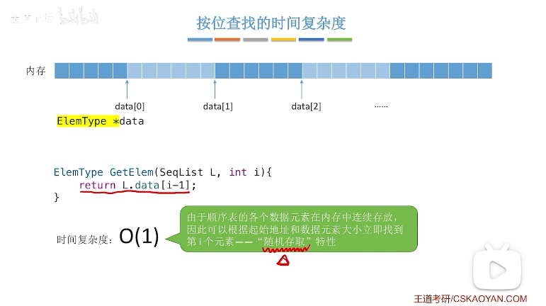 按位:用数组下标即可得到第i个元素L.data [i-1]