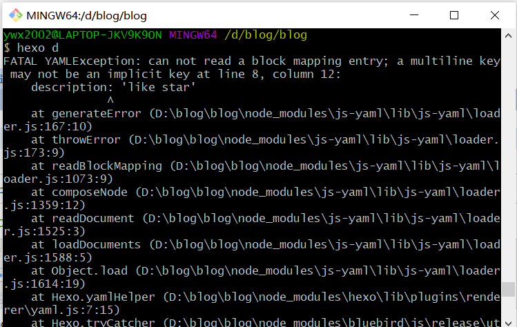 查资料都说是缩进格式的问题,我先后更改了_config.yml的deploy模块和site模块,缩进是没有问题的,有检查了index.md的也没有问题