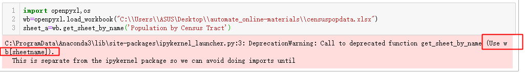 例如 get_getsheet_by_name的函数使用,系统建议改为使用wb[sheetname]的函数调用