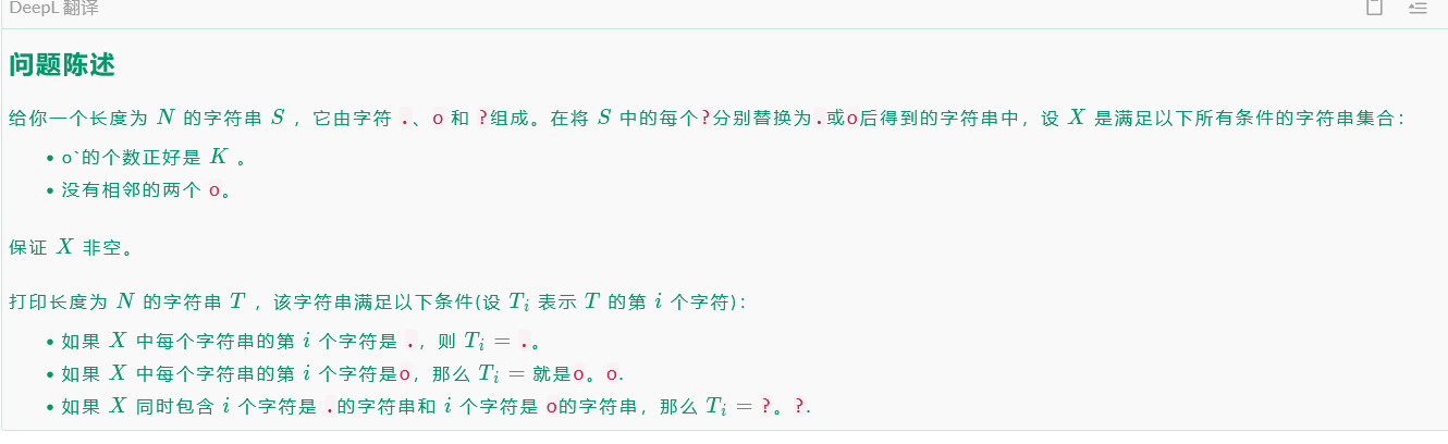 如果不超过K边界,我最多可以构造M个,> K, 所以任何位置我都能填或者不填,就是原来的S,????? o.o.o, .o.o..,(可以任意删除o位置)