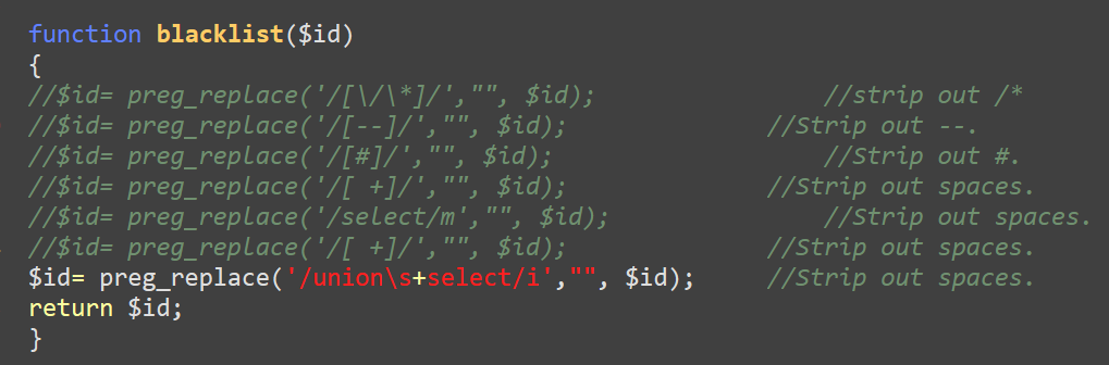 这里的方法是传入两个id参数,让第一个过白名单,第二个用以sql注入