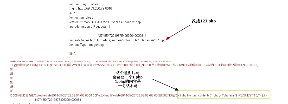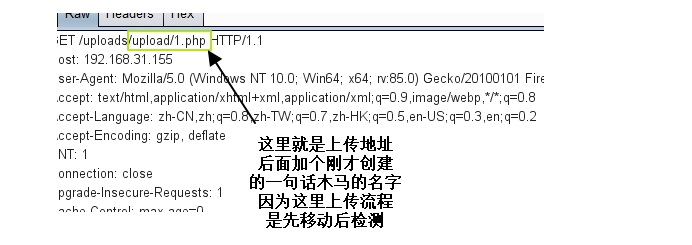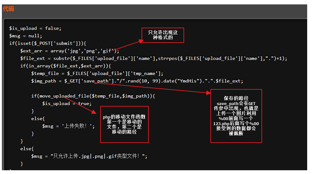 通过修改保存修改路径,后面添加php文件名加上%00进行截断,上传的图片本应该会按照代码直接移动到保存路径,例如192.168.30.250/uploads/1.php%00/asdas123.jpg,但是windows读到%00会认为结束了,不会考虑后面的,所以就把文件赋值到了1.php中