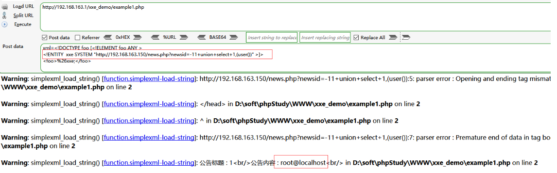 存在XXE,打入语句后,没有任何回显,就可以通过炮台外带数据