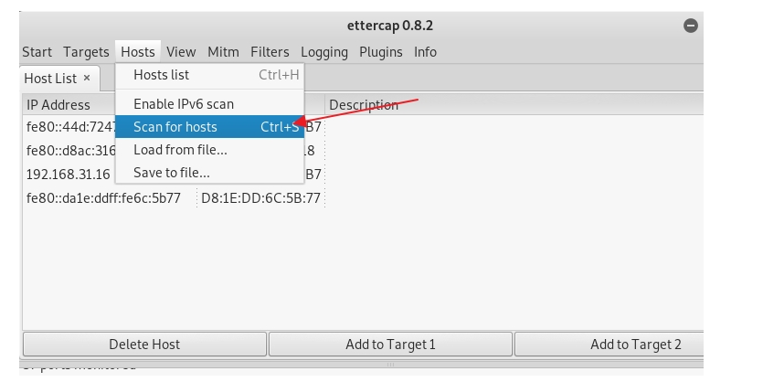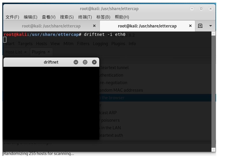 - 在Mitm中选择arp攻击方式,勾选第一个选项
