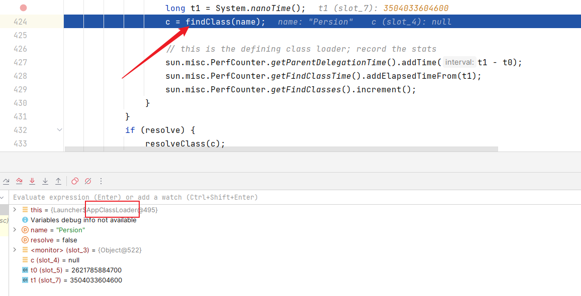 - 在调用loadClass处打入断点