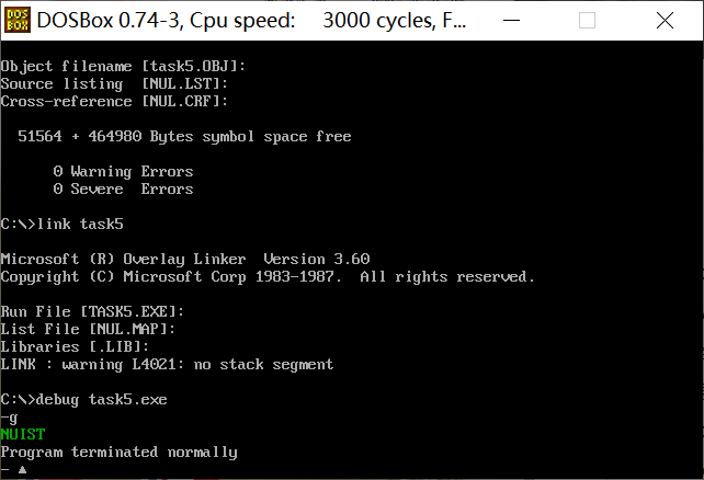 使用任意文本编辑器,录入汇编源程序task5.asm。