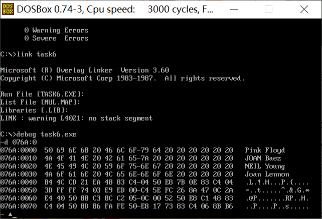 对程序task1_1.asm进行汇编、连接,用debug加载、跟踪调试,基于结果,回答问题。