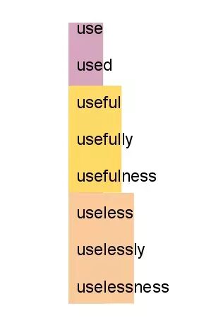 很明显,每一个单词都以表中的第一个单词“use”为前缀。所以我们很容易将它们压缩成下面的数组。
